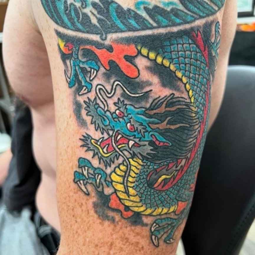 **American Traditional**: Beam's bold line work pays homage to the Sailor Jerry style, bringing a vintage look and touch of tattoo history to every piece.